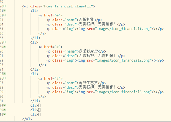 3、 列表可以循环输出,如下面这个模块,颜色全部由css控制,html dom结构完全一样,方便程序员嵌套数据